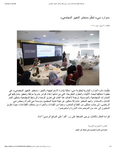 ﻲﻓ ،«ﻲﻌﻤﺘﺠﻤﻟا ﺮﯿﯿﻐﺘﻟا ﺮﺒﺘﺨﻣ» ،ﺰﯿﻤﺘﻟاو ﺔﯿﺠﯿﺗاﺮﺘﺳﻻا ةرادﺈﺑ ﺔﻠﺜﻤﻣ ،ﻲﺑد ﺔﻣﻮﻜﺤﻟ ﺔﯾﺮﺸﺒﻟا دراﻮﻤﻟا ةﺮﺋاد ﺖﻤﻈﻧ
