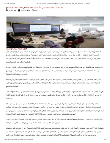7/23/25, 2:32 PM تارﺎﻣﻹا رﺎﺑﺧأ ﺔﻛﺑﺷ - ﻊﻣﺗﺟﻣﻟا مﺎﻋ فادھﻷ ﺎًﻣﻋد "ﻲﻌﻣﺗﺟﻣﻟا رﯾﯾﻐﺗﻟا رﺑﺗﺧﻣ" م ّ ظﻧﺗ ﻲﺑد ﺔﻣوﻛﺣﻟ ﺔﯾرﺷﺑﻟا دراوﻣﻟا ةرﺋاد