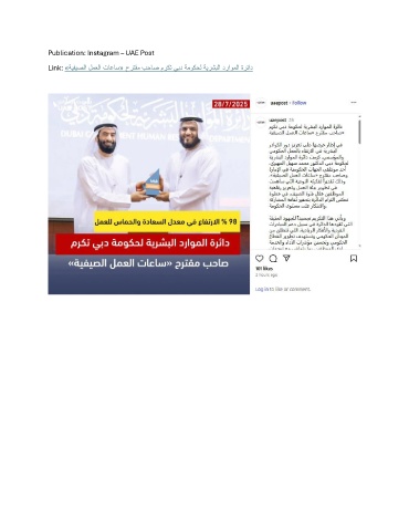 Publication: Instagram – UAE Post Link: »ةيفيصلا لمعلا تاعاس« حرتقم بحاص مركت يبد ةموكحل ةيرشبلا دراوملا ةرئاد