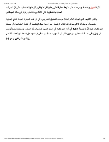 لﺻو ًﺎﻧّﺳﺣﺗ تﻠّﺟﺳو ،ددﺣﻣﻟا تﻗوﻟا نﻣﺿ مﺎﮭﻣﻟا زﺎﺟﻧإ ﻲﻓ نﯾﻔظوﻣﻟا ءادأ ﻲﻓ %87 ﺔﺑﺳﻧﺑ ترﺛأ ثﯾﺣ ،نﯾﻔظوﻣﻟا
