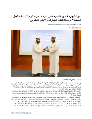 هتركفل ا ً ريدقت كلذو ،”ةيفيصلا لمعلا تاعاس“ حرتقم بحاصو ةراملإا يف ةيموكحلا تاهجلا يفظوم دحأ ،يريهملا ليهس دمحم روتكدلا