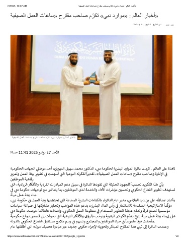 7/28/25, 10:07 AM ﺔﯾﻔﯾﺻﻟا لﻣﻌﻟا تﺎﻋﺎﺳ» حرﺗﻘﻣ بﺣﺎﺻ م ّ رﻛﺗ «ﻲﺑد دراوﻣ» : مﻟﺎﻌﻟا رﺎﺑﺧأ»