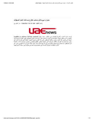 7/28/25, 10:06 AM UAE News - ﺔﯾﻔﯾﺻﻟا لﻣﻌﻟا تﺎﻋﺎﺳ» حرﺗﻘﻣ بﺣﺎﺻ م ّ رﻛﺗ «ﻲﺑد دراوﻣ» - تارﺎﻣﻹا رﺎﺑﺧأ»