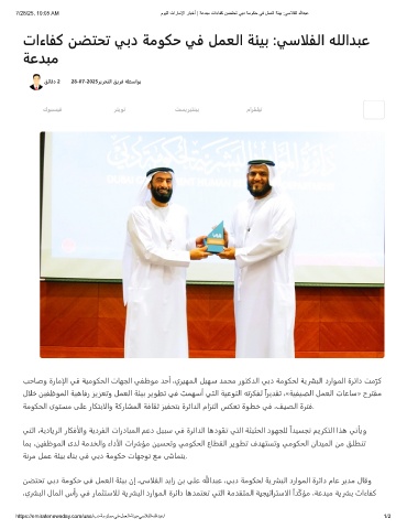 7/28/25, 10:05 AM موﯾﻟا تارﺎﻣﻹا رﺎﺑﺧأ | ﺔﻋدﺑﻣ تاءﺎﻔﻛ نﺿﺗﺣﺗ ﻲﺑد ﺔﻣوﻛﺣ ﻲﻓ لﻣﻌﻟا ﺔﺋﯾﺑ :ﻲﺳﻼﻔﻟا ﷲدﺑﻋ