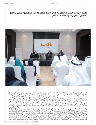 �ﻞﯿھﺄﺗ� ﺞﻣﺎﻧﺮﺑ ﺪﺴﺠﻳ" :ﻲﺑد ﺔﻣﻮﻜﺤﻟ ﺔﻳﺮﺸﺒﻟا دراﻮﻤﻟا ةﺮﺋاد مﺎﻋ ﺮﻳﺪﻣ ﻲﺳﻼﻔﻟا ﺪﻳاز ﻦﺑ ﻲﻠﻋ ﷲﺪﺒﻋ ةدﺎﻌﺳ لﺎﻗو