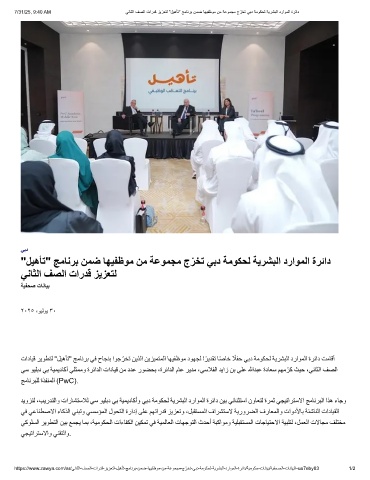 7/31/25, 9:40 AM ﻲﻧﺎﺛﻟا فﺻﻟا تاردﻗ زﯾزﻌﺗﻟ "لﯾھﺄﺗ" ﺞﻣﺎﻧرﺑ نﻣﺿ ﺎﮭﯾﻔظوﻣ نﻣ ﺔﻋوﻣﺟﻣ ج ّ رﺧﺗ ﻲﺑد ﺔﻣوﻛﺣﻟ ﺔﯾرﺷﺑﻟا دراوﻣﻟا ةرﺋاد