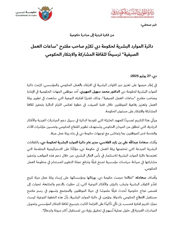 ﻞﻤﻌﻟا تﺎﻋﺎﺳ" حﺮﺘﻘﻣ ﺐﺣﺎﺻ مﺮﻜﺗ يد ﺔﻣﻮﻜﺤﻟ ﺔﻳﺮﺸﺒﻟا دراﻮﻤﻟا ةﺮﺋاد