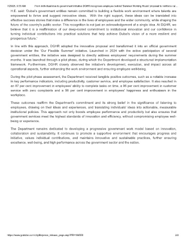7/29/25, 9:33 AM From individual idea to government initiative DGHR recognises employee behind 'Summer Working Hours' proposal to reinforce cul…