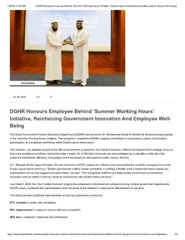 7/29/25, 9:34 AM DGHR Honours Employee Behind ‘Summer Working Hours’ Initiative, Reinforcing Government Innovation and Employee Well-being