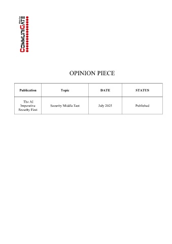 OPINION PIECE Publication Topic DATE STATUS The AI Imperative Security Middle East July 2025 Published Security First