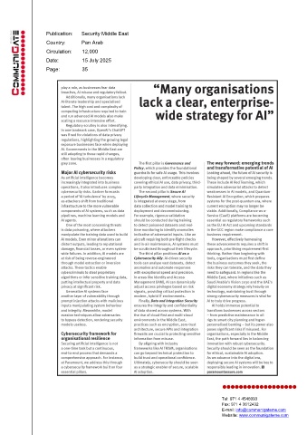 Publication: Security Middle East Country: Pan Arab Circulation: 12,000 Date: 15 July 2025 Page: 35 Tel: 971 4 4546093 Fax: 971 4 3612432 E-mail: info@communigateme.com Website: www.communigateme.com