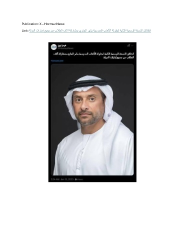 Publication: X – Hormuz News Link: ةلودلا تارامإ عيمج نم بلاطلا فلاآ ةكراشمب يراجلا رياني ةيسردملا باعللأا ةلوطبل ةيناثلا ةيمسرلا ةخسنلا قلاطنا