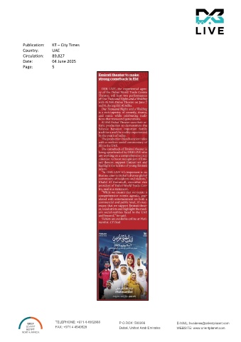 Publication: KT – City Times Country: UAE Circulation: 89,827 Date: 04 June 2025 Page: 5 TELEPHONE: +971 4 4562888 P.O.BOX: 500266 E-MAIL: business@orientplanet.com FAX: +971 4 4549528 Dubai, United Arab Emirates WEBSITE: www.orientplanet.com