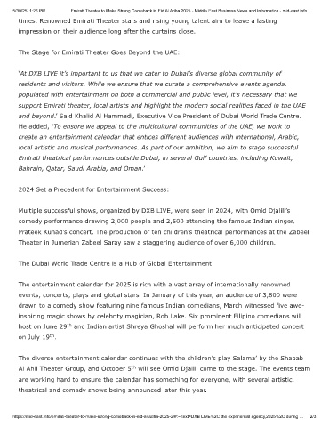 https://mid-east.info/emirati-theater-to-make-strong-comeback-in-eid-al-adha-2025-2/#:~:text=DXB LIVE%2C the experiential agency,2025%2C during …  2/3