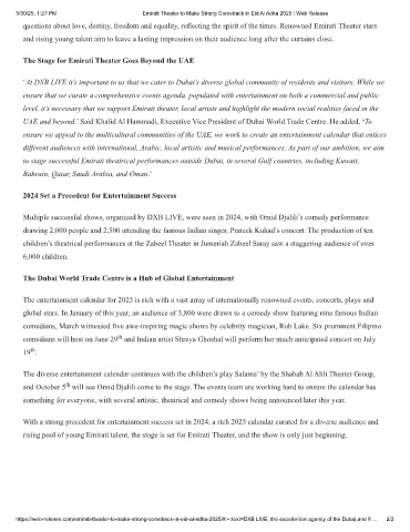 5/30/25, 1:27 PM Emirati Theater to Make Strong Comeback in Eid Al Adha 2025 | Web Release