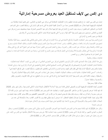 بھاوﻣﻟا ﻰﻠﻋ ءوﺿﻟا طﻠﺳﺗو ،ﻲﺗارﺎﻣﻹا نﻔﻟا مﻋدﺗ ﻲﺗﻟا ﺔﻋ ّ وﻧﺗﻣﻟا ﺔﯾﻧﻔﻟا لﺎﻣﻋﻷا نﻣ اًددﻋ نﻣﺿﺗﺗ 2025 مﺎﻋ لﻼﺧ ﺔﯾﺣﻟا ﺔﯾﮭﯾﻓرﺗﻟا تﺎﯾﻟﺎﻌﻔﻟا