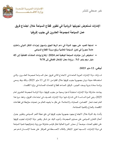 ﺎﯿﻘﯿرﻓإ بوﻨﺠﻟ تارﺎﻤﻹا ﺔﻟود رﯿدﻘﺘو رﻛـــﺸ نﻋ دﻓوﻟا برﻋأو ،ﺔﻋوﻤﺠﻤﻟا ىوﺘـــﺴﻤ ﻰﻠﻋ ﻲﺤﺎﯿـــﺴﻟا نوﺎﻌﺘﻟا لﺎﻤﻋأ