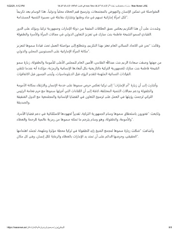 ﺔﻣﻮﻣألا ﺔﻧﺎﻜﻤﺑ ءﺎﻘﺗرالاو نﺎﺴﻧإلا ﺔﻣﺪﺧ ﻰﻠﻋ ﺎﻫﻮﻤﺳ صﺮﺣ ﺲﻜﻌﺗ ﺎﻴﻛﺮﺗ ﻰﻟإ ”تارﺎﻣإلا مأ“ ةرﺎﻳز نأ ﻰﻟإ ترﺎﺷأو