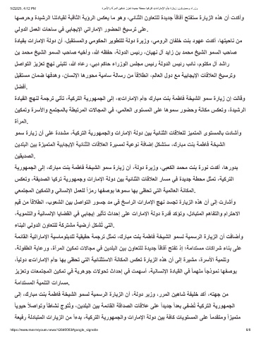 وﻣﺳ ةرﺎﯾز نأ ﻰﻠﻋ ةددﺷﻣ ،ﺔﯾﻛرﺗﻟا ﺔﯾروﮭﻣﺟﻟاو تارﺎﻣﻹا ﺔﻟود نﯾﺑ ﺔﯾﺋﺎﻧﺛﻟا تﺎﻗﻼﻌﻠﻟ زﯾﻣﺗﻣﻟا ىوﺗﺳﻣﻟﺎﺑ تدﺎﺷأو
