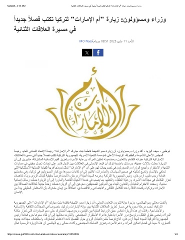 5/22/25, 4:13 PM ﺔﯾﺋﺎﻧﺛﻟا تﺎﻗﻼﻌﻟا ةرﯾﺳﻣ ﻲﻓ ًادﯾدﺟ ًﻼﺻﻓ بﺗﻛﺗ ﺎﯾﻛرﺗﻟ "تارﺎﻣﻹا مأ" ةرﺎﯾز :نوﻟوؤﺳﻣو ءارزو