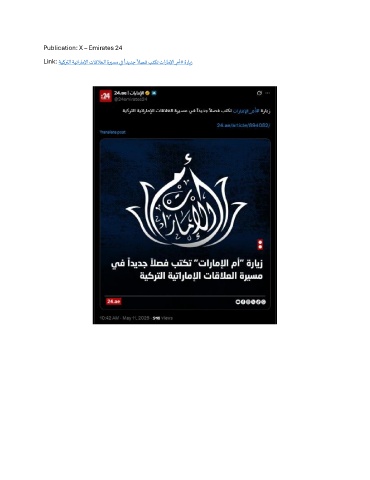 Publication: X – Emirates 24 ً ً Link: ةيكرتلا ةيتاراملإا تاقلاعلا ةريسم يف اديدج لاصف بتكت تاراملإا_مأ# ةرايز