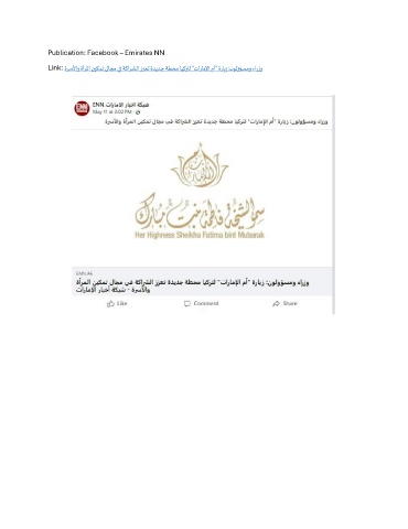 Publication: Facebook – Emirates NN Link: ةرسلأاو ةأرلما نيكمت لاجم يف ةكارشلا ززعت ةديدج ةطحم ايكرتل "تاراملإا مأ" ةرايز :نولوؤسمو ءارزو