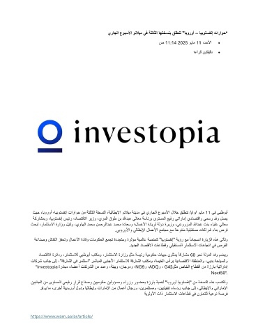 "Investopia ةردابم ءاضعأ تاكرشلا نم ددعو ،ةئيبو ،ناجرمو ، NG9 و ، ADQ و ، G42 لثم صاخلا عاطقلا نم ةزراب ةيتارامإ