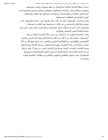 5/22/25, 3:55 PM "دﺎﺻﺗﻗﻻاو ﺔﺣﺎﯾﺳﻟا ﻲﻓ ﺔﯾﻠﺑﻘﺗﺳﻣ تﺎﻛارﺷ رﯾوطﺗ شﻗﺎﻧﺗو يرﺎﺟﻟا عوﺑﺳﻷا وﻧﻼﯾﻣ ﻲﻓ ﻖﻠطﻧﺗ "ﺎﺑوروأ – ﺎﯾﺑوﺗﺳﻔﻧإ تاراوﺣ