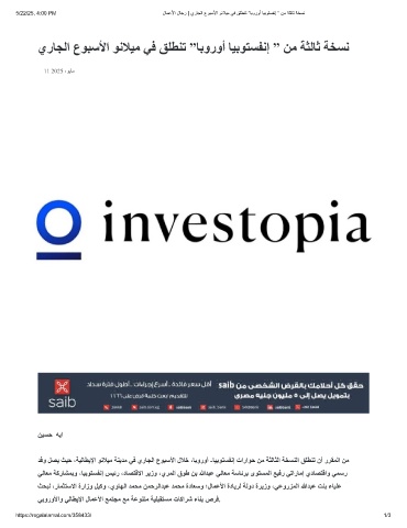5/22/25, 4:00 PM لﺎﻣﻋﻷا لﺎﺟر | يرﺎﺟﻟا عوﺑﺳﻷا وﻧﻼﯾﻣ ﻲﻓ ﻖﻠطﻧﺗ ”ﺎﺑوروأ ﺎﯾﺑوﺗﺳﻔﻧإ ” نﻣ ﺔﺛﻟﺎﺛ ﺔﺧﺳﻧ