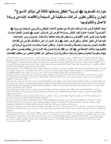 تﺎﺳﻠﺟ ﺔﯾﻟﺎﻌﻔﻟا نﻣﺿﺗﺗ � دﯾدﺟﻟا رﺎﻣﺛﺗﺳﻻا ﻲﻓ صرﻔﻟا ﺔﻋﺎﻧﺻو شﺎﻘﻧﻟا دوﻘﺗ ﺔﯾﻣﻟﺎﻋ ﺔﺻﻧﻣﻛ "ﺎﯾﺑوﺗﺳﻔﻧإ"