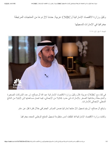 5/22/25, 4:41 PM ةﺎﻧﻗ CNBC ل ﺔﯾﺗارﺎﻣﻹا دﺎﺻﺗﻗﻻا ةرازو لﯾﻛو | ﺔﯾﺑرﻋCNBC ﺎﮭﻠﯾﺟﺳﺗﻟ تارﺎﻣﻹا ﻲﻓ ﺎﯾﻓارﻐﺟ ﺔطﺑﺗرﻣﻟا تﺎﺟﺗﻧﻣﻟا نﻣ ﺎﻋوﻧ 25 ﺎﻧددﺣ :ﺔﯾﺑرﻋ