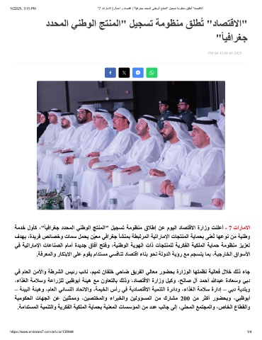 5/22/25, 3:15 PM "7 تارﺎﻣﻻا | لﺎﻣﻋا و دﺎﺻﺗﻗا | " ً ﺎﯾﻓارﻐﺟ ددﺣﻣﻟا ﻲﻧطوﻟا ﺞﺗﻧﻣﻟا" لﯾﺟﺳﺗ ﺔﻣوظﻧﻣ ﻖﻠطُﺗ "دﺎﺻﺗﻗﻻا