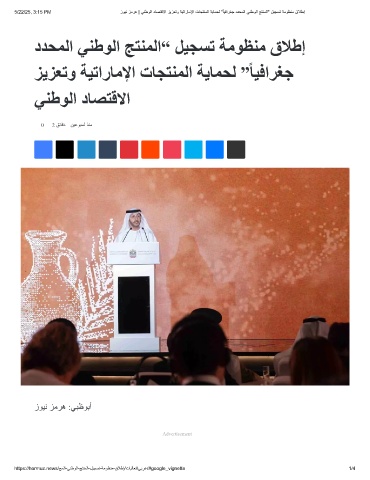 5/22/25, 3:15 PM زوﯾﻧ زﻣرھ | ﻲﻧطوﻟا دﺎﺻﺗﻗﻻا زﯾزﻌﺗو ﺔﯾﺗارﺎﻣﻹا تﺎﺟﺗﻧﻣﻟا ﺔﯾﺎﻣﺣﻟ " ً ﺎﯾﻓارﻐﺟ ددﺣﻣﻟا ﻲﻧطوﻟا ﺞﺗﻧﻣﻟا" لﯾﺟﺳﺗ ﺔﻣوظﻧﻣ قﻼطإ