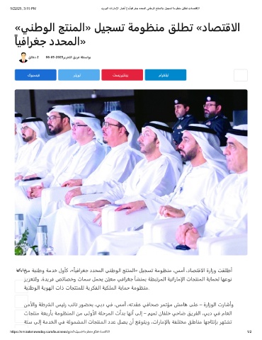 5/22/25, 3:15 PM «موﯾﻟا تارﺎﻣﻹا رﺎﺑﺧأ | «ً ﺎﯾﻓارﻐﺟ ددﺣﻣﻟا ﻲﻧطوﻟا ﺞﺗﻧﻣﻟا» لﯾﺟﺳﺗ ﺔﻣوظﻧﻣ ﻖﻠطﺗ «دﺎﺻﺗﻗﻻا