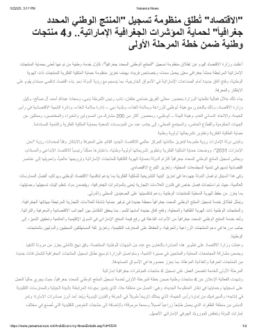 تﺎﺟﺗﻧﻣﻟا ﺔﯾﺎﻣﺣﺑ ﻰﻧﻌُﺗ ﺎﮭﻋوﻧ نﻣ ﺔﯾﻧطو ﺔﻣدﺧ لوﺄﻛ ،"ً ﺎﯾﻓارﻐﺟ ددﺣﻣﻟا ﻲﻧطوﻟا ﺞﺗﻧﻣﻟا" لﯾﺟﺳﺗ ﺔﻣوظﻧﻣ قﻼطإ نﻋ موﯾﻟا دﺎﺻﺗﻗﻻا ةرازو تﻧﻠﻋأ