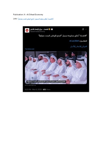 Publication: X – Al Etihad Economy ُ Link: " ايفارغج ددحلما ينطولا جتنلما" ليجست ةموظنم قلطت "داصتقلاا"