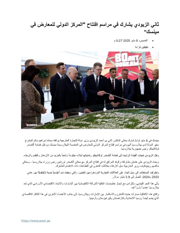 خرشملا ملاس ميهاربإ ةداعس هقفاري ةيجراخلا ةراجتلل ةلود ريزو يدويزلا دمحأ نب يناث روتكدلا يلاعم كراش /ماو/ ويام 8 يف كسنيم