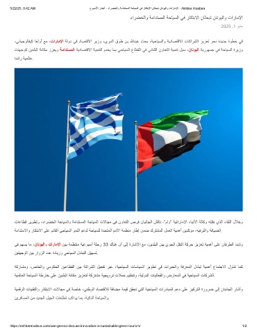 https://akhbaralusbua.com/uae-greece-discuss-innovation-in-sustainable-green-tourism/ 1/2