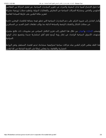 5/22/25, 9:42 AM رﺋﺎط رﺑﺧ - ﺔﻣادﺗﺳﻣﻟا ﺔﯾﻣﻧﺗﻟا ﻖﯾﻘﺣﺗﻟ ﻲﺣﺎﯾﺳﻟا نوﺎﻌﺗﻟا ناززﻌﺗ نﺎﻧوﯾﻟاو تارﺎﻣﻹا - Khabar Taer