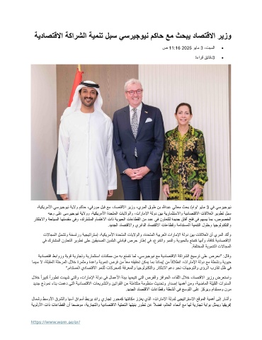 هجو ىلع يسريجوين ةيلاوو ،ةيكيرملأا ةدحتملا تايلاولاو ،تاراملإا ةلود نيب ةيرامثتسلااو ةيداصتقلاا تاقلاعلا ريوطت لبس