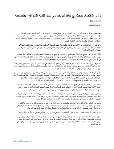 نواعتلل ًادئار ًاجذومن اهرابتعاب يسريجوين ةيلاوو تاراملإا ةلود نيب ةيداصتقلاا تاقلاعلا قافآ ،ءاقللا للاخ ،نابناجلا ضرعتساو