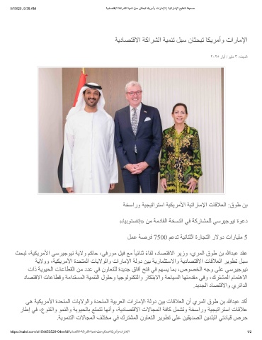 5/19/25, 9:38 AM ﺔﯾدﺎﺻﺗﻗﻻا ﺔﻛارﺷﻟا ﺔﯾﻣﻧﺗ لﺑﺳ نﺎﺛﺣﺑﺗ ﺎﻛﯾرﻣأو تارﺎﻣﻹا | ﺔﯾﺗارﺎﻣﻹا ﺞﯾﻠﺧﻟا ﺔﻔﯾﺣﺻ