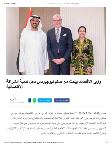 ،ﻲﻓرﻮﻣ ﻞﯿﻓ ﻊﻣ ،دﺎﺼﺘﻗﻻا ﺮﯾزو ،يﺮﻤﻟا قﻮط ﻦﺑ ﷲﺪﺒﻋ ﻲﻟﺎﻌﻣ ﺚﺤﺑ<" (MENAFN- Al-Bayan)