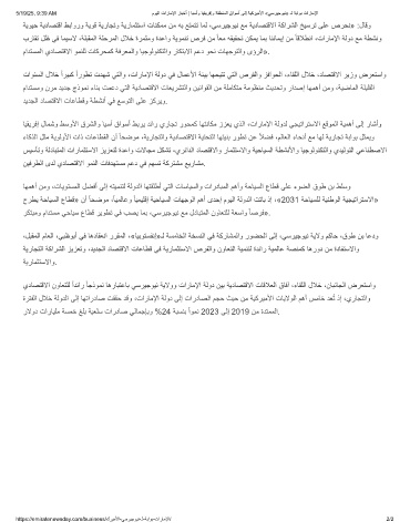 يدﺎﺻﺗﻗﻻا نوﺎﻌﺗﻠﻟ ًادﺋار ً ﺎﺟذوﻣﻧ ﺎھرﺎﺑﺗﻋﺎﺑ ﻲﺳرﯾﺟوﯾﻧ ﺔﯾﻻوو تارﺎﻣﻹا ﺔﻟود نﯾﺑ ﺔﯾدﺎﺻﺗﻗﻻا تﺎﻗﻼﻌﻟا قﺎﻓآ ،ءﺎﻘﻠﻟا لﻼﺧ ،نﺎﺑﻧﺎﺟﻟا ضرﻌﺗﺳاو
