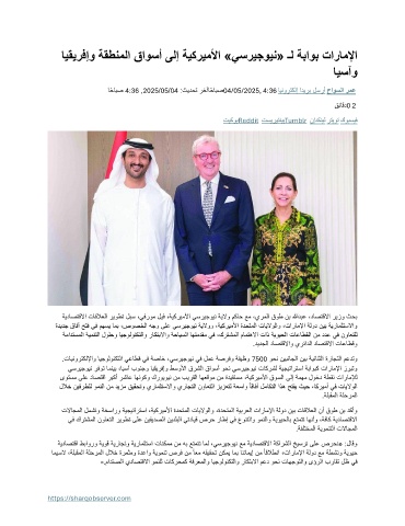 ةديدج قافآ حتف يف مهسي امب ،صوصخلا هجو ىلع يسريجوين ةيلاوو ،ةيكريملأا ةدحتملا تايلاولاو ،تاراملإا ةلود نيب ةيرامثتسلااو