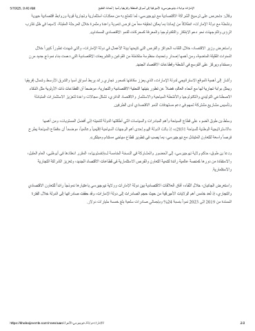 يدﺎﺼﺘﻗﻻا نوﺎﻌﺘﻠﻟ ًاﺪﺋار ً ﺎﺟذﻮﻤﻧ ﺎھرﺎﺒﺘﻋﺎﺑ ﻲﺳﺮﯿﺟﻮﯿﻧ ﺔﯾﻻوو تارﺎﻣﻹا ﺔﻟود ﻦﯿﺑ ﺔﯾدﺎﺼﺘﻗﻻا تﺎﻗﻼﻌﻟا قﺎﻓآ ،ءﺎﻘﻠﻟا لﻼﺧ ،نﺎﺒﻧﺎﺠﻟا ضﺮﻌﺘﺳاو