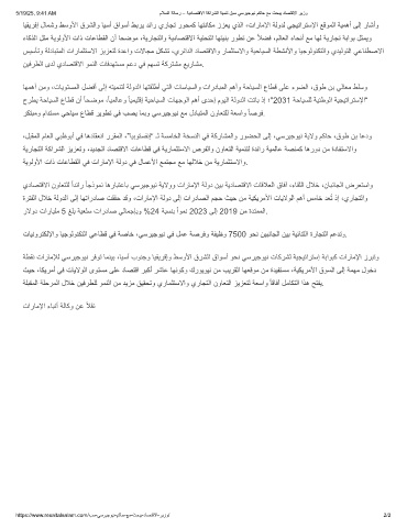 يدﺎﺻﺗﻗﻻا نوﺎﻌﺗﻠﻟ ًادﺋار ً ﺎﺟذوﻣﻧ ﺎھرﺎﺑﺗﻋﺎﺑ ﻲﺳرﯾﺟوﯾﻧ ﺔﯾﻻوو تارﺎﻣﻹا ﺔﻟود نﯾﺑ ﺔﯾدﺎﺻﺗﻗﻻا تﺎﻗﻼﻌﻟا قﺎﻓآ ،ءﺎﻘﻠﻟا لﻼﺧ ،نﺎﺑﻧﺎﺟﻟا ضرﻌﺗﺳاو