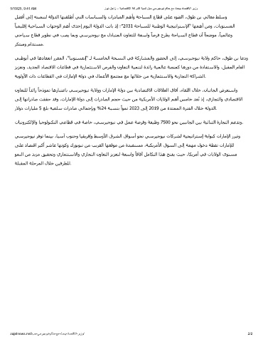 ً ﺎﯿﻤﯿﻠﻗإ ﺔﯿﺣﺎﯿﺴﻟا تﺎﮫﺟﻮﻟا ﻢھأ ىﺪﺣإ مﻮﯿﻟا ﺔﻟوﺪﻟا ﺖﺗﺎﺑ ذإ ؛″2031 ﺔﺣﺎﯿﺴﻠﻟ ﺔﯿﻨطﻮﻟا ﺔﯿﺠﯿﺗاﺮﺘﺳﻹا“ ﺎﮫﻤھأ ﻦﻣو ،تﺎﻳﻮﺘﺴﻤﻟا