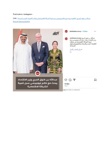 Publication: Instagram - Link: ةحايسلاو ديدجلا داصتقلاا تلااجم يف ةيداصتقلاا ةكارشلا ةيمنت لبس ي سريجوين مكاح عم ثحبي داصتقلاا ريزو يرلما قوط نب اللهدبع ةمادتسلاا لولحو ايجولونكتلاو