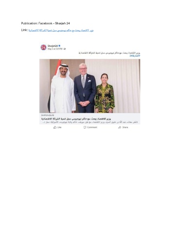 Publication: Facebook – Sharjah 24 Link: ةيداصتقلاا ةكارشلا ةيمنت لبس ي سريجوين مكاح عم ثحبي داصتقلاا ريزو